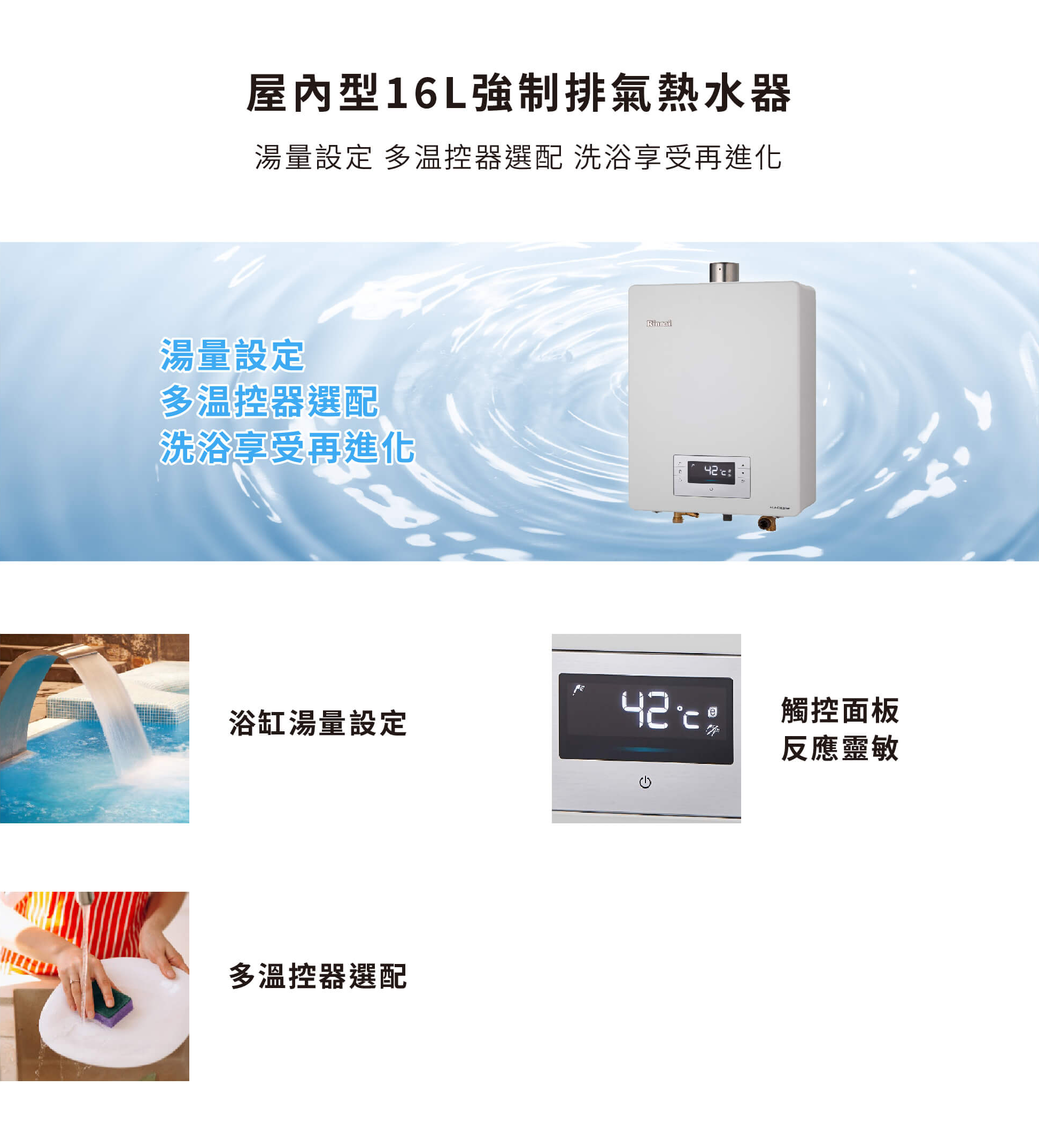 Rinnai 林內 RUA-C1620WF|水量伺服器、台灣製造|16公升 智能控溫熱水器