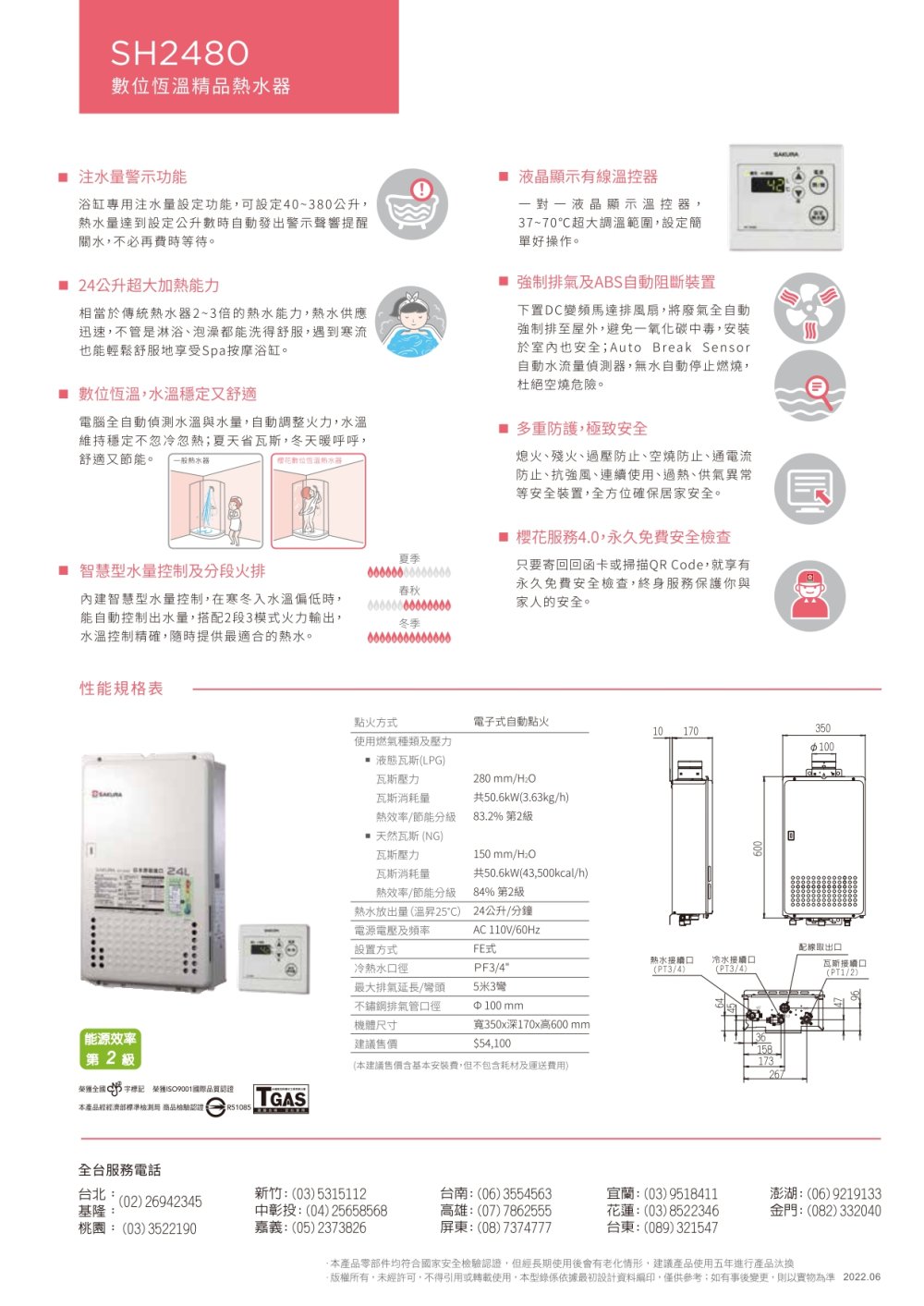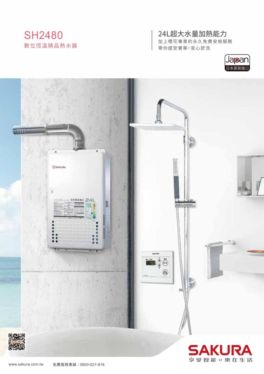 SAKURA 櫻花 SH2480|水量調節、日本製造|24公升 智能控溫熱水器