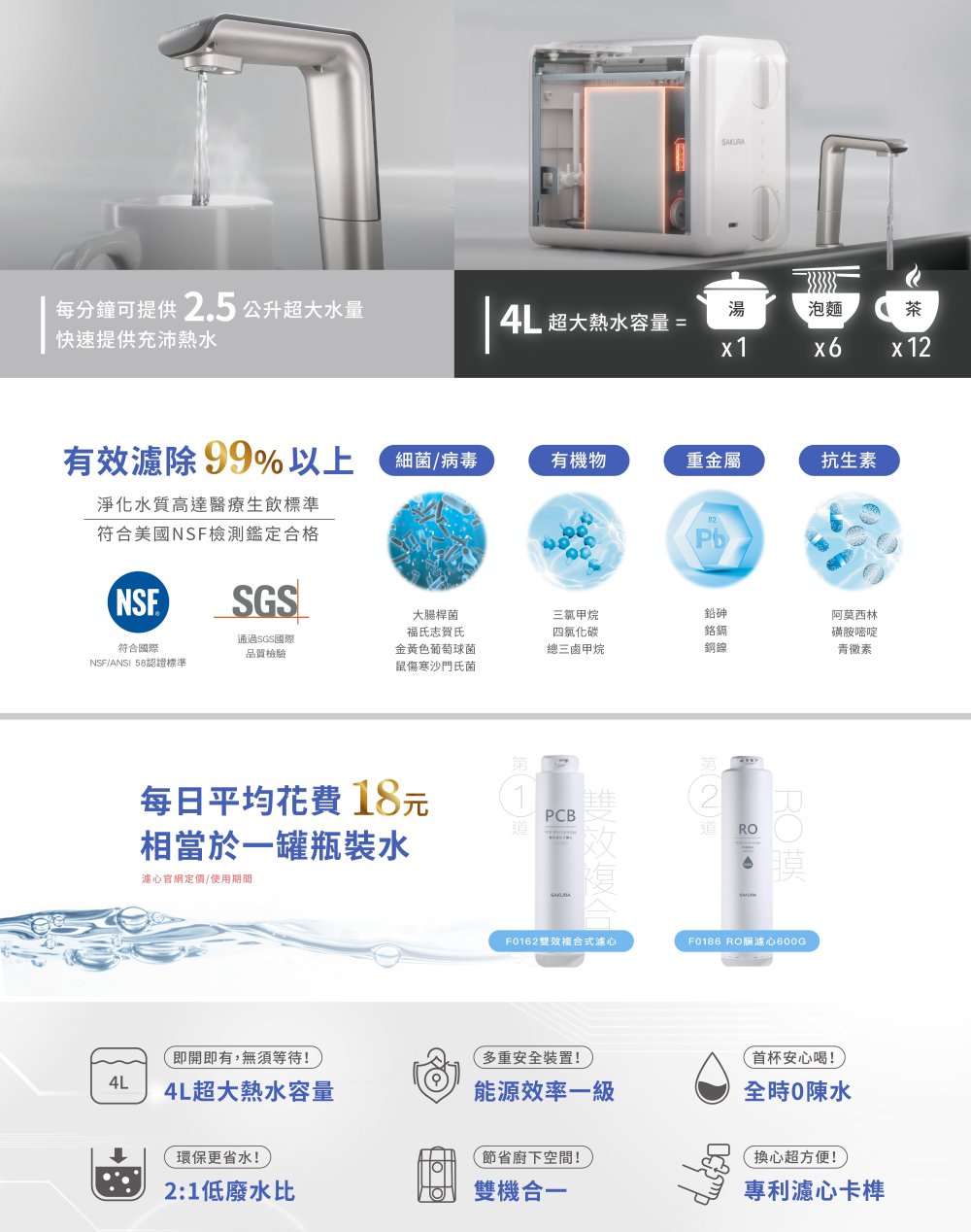 ◆ 創新專利設計,RO淨水+熱水雙機合一