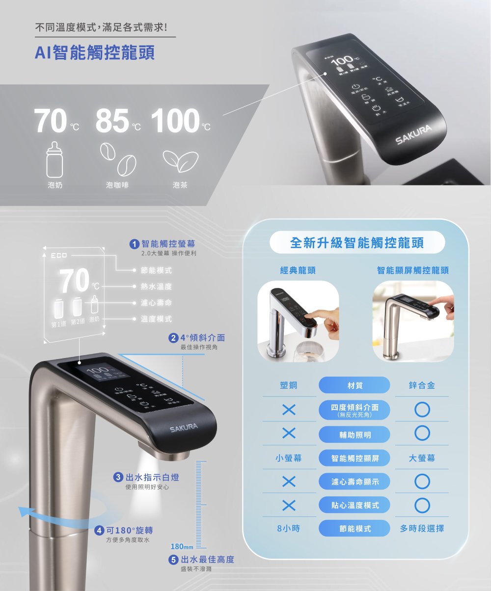◆ 搭配2吋LED大螢幕智能觸控龍頭,操作簡便