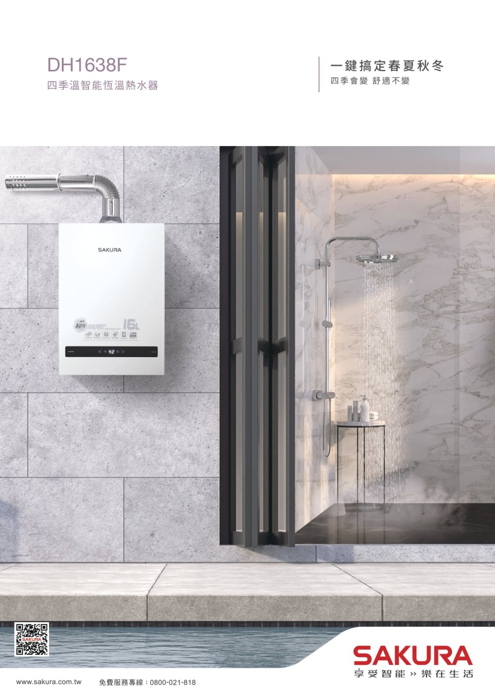 SAKURA 櫻花 DH1638F|四季溫|16公升 智能控溫熱水器