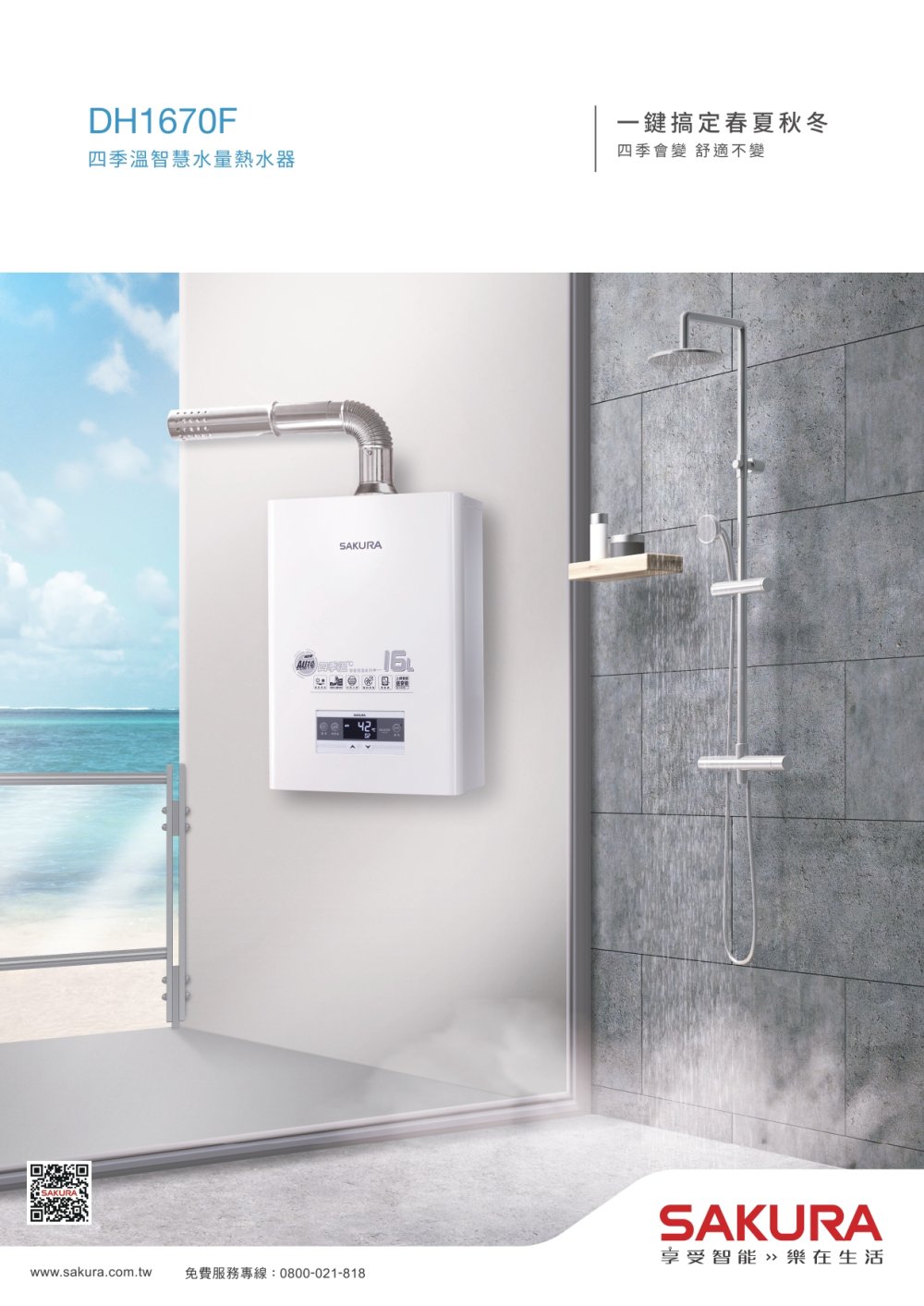 SAKURA 櫻花 DH1670F|四季溫、水量調節|16公升 智能控溫熱水器