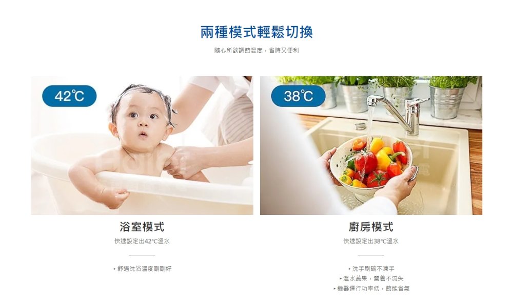 ◆ 2組記憶溫度:一鍵切換浴室模式、廚房模式