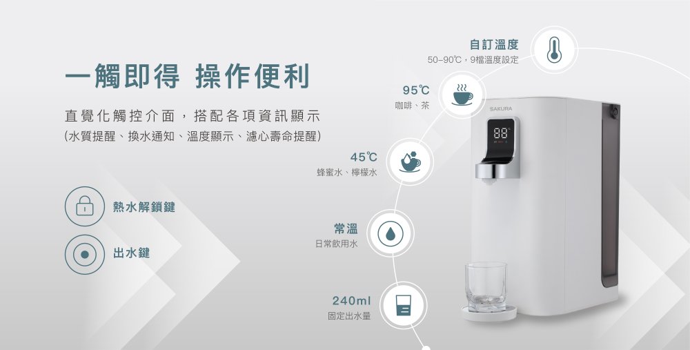 SAKURA櫻花 P5530W|桌上型|雙溫觸控式飲水機|RO淨飲一體
