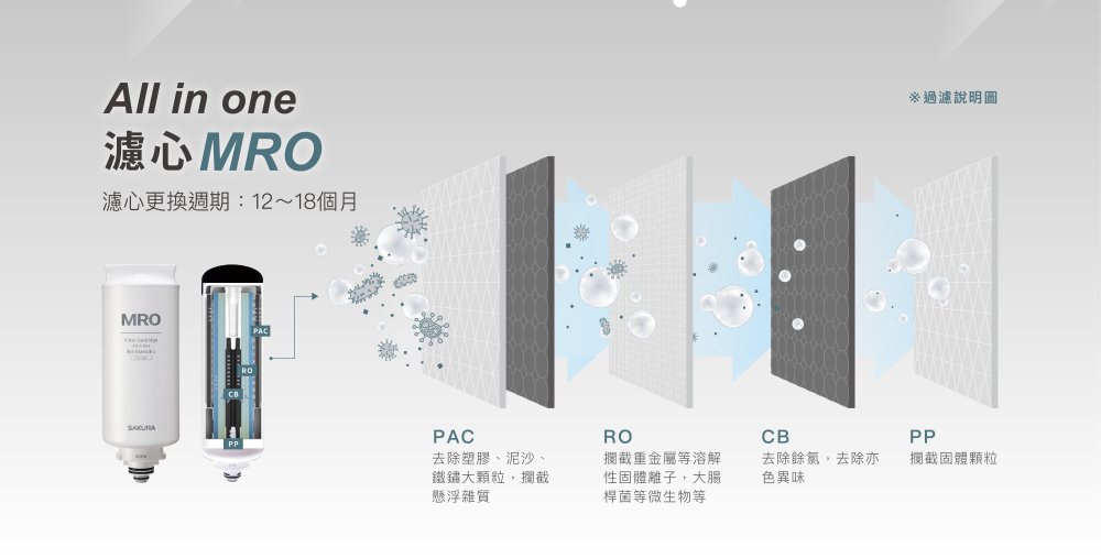 過濾濾材:MRO濾心 (12~18個月)